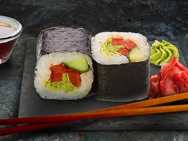 Рис, перец, помидор, огурец, салат, соус кунжутный