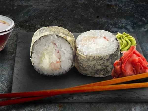 Ролл темпурный краб с креветками280 гТигровые креветки, рис, нори, икра масаго, сливочный сыр, снежный краб, кляр